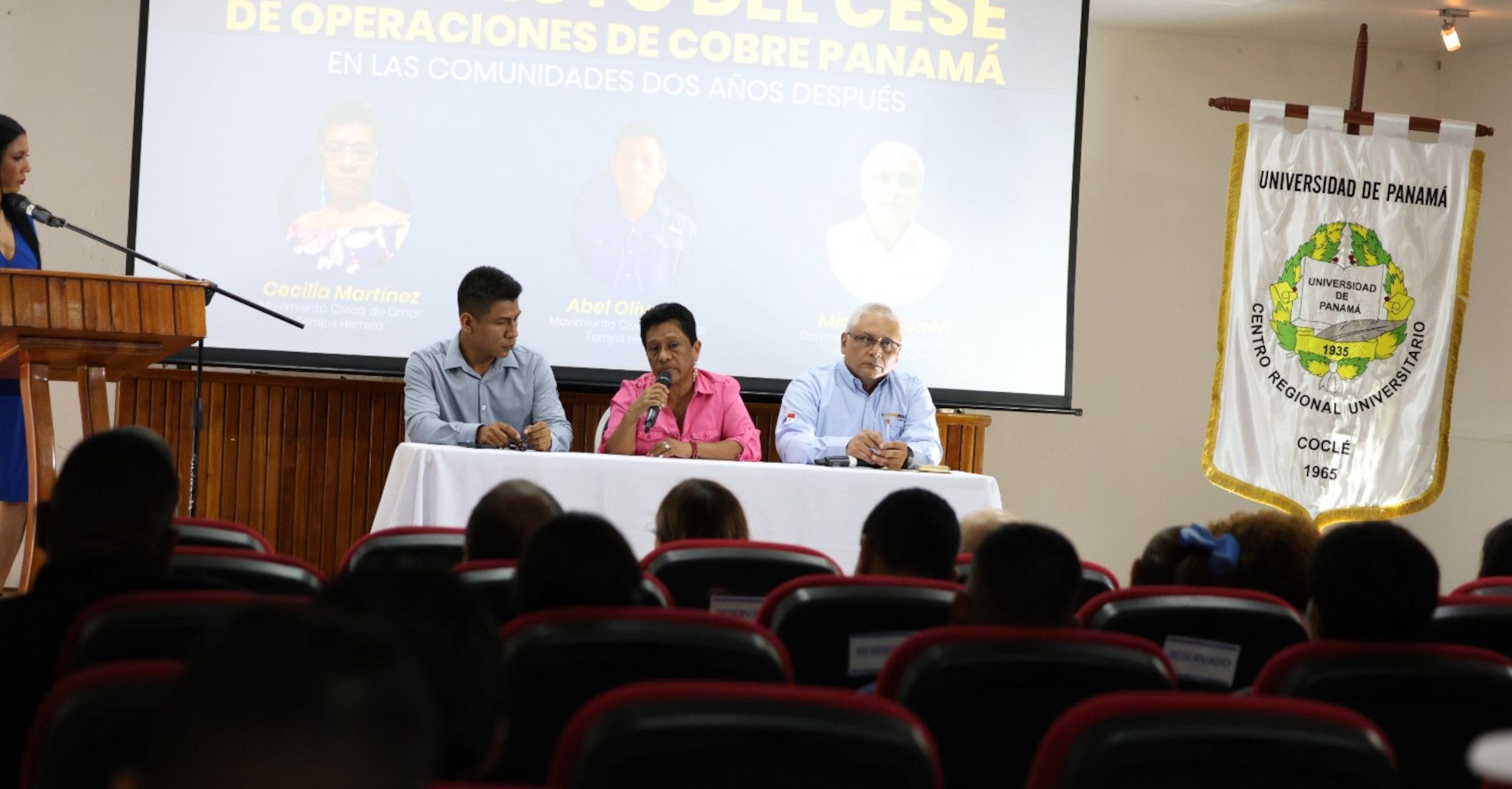 La jornada incluyó una mesa redonda con la participación de líderes comunitarios del Movimiento Cívico de Omar Torrijos Herrera, entre ellos Cecilia Martínez y Abel Oliveros, quienes compartieron sus perspectivas sobre el impacto económico y social del cese de operaciones.